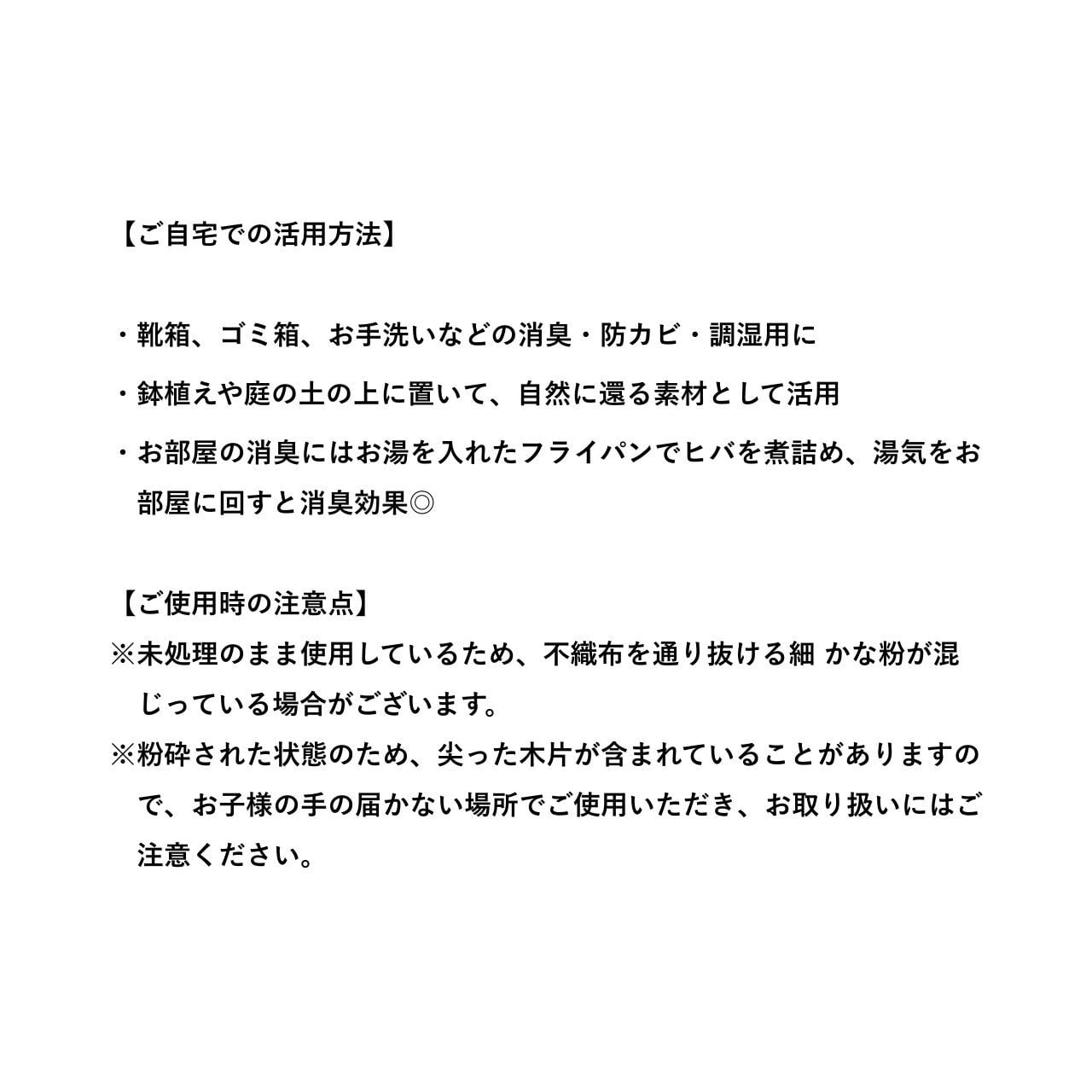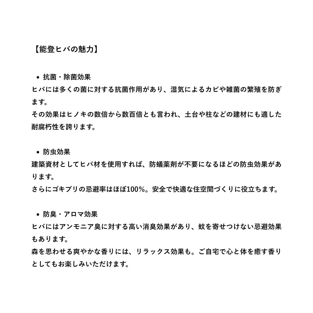 ヒバにはアンモニア臭に対する高い消臭効果があり、蚊を寄せつけない忌避効果もあります。